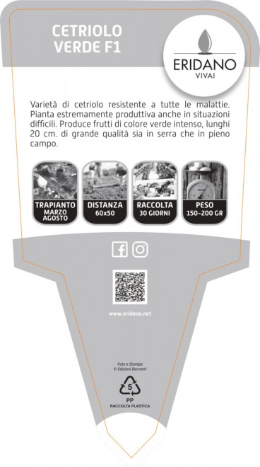 Varietà di cetriolo resistente a tutte le malattie. Pianta estremamente produttiva anche in situazioni difficili. Produce frutti di colore verde intenso, lunghi 20 cm. Di grande qualità sia in serra che in pieno campo.