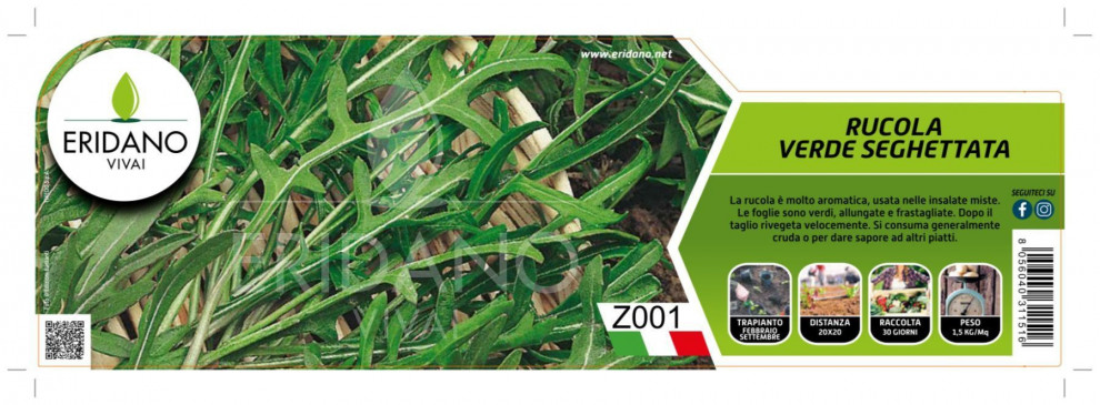 Prodotti > Piantine da orto > RUCOLA - SEDANO > RUCOLA VERDE SEGHETTATA